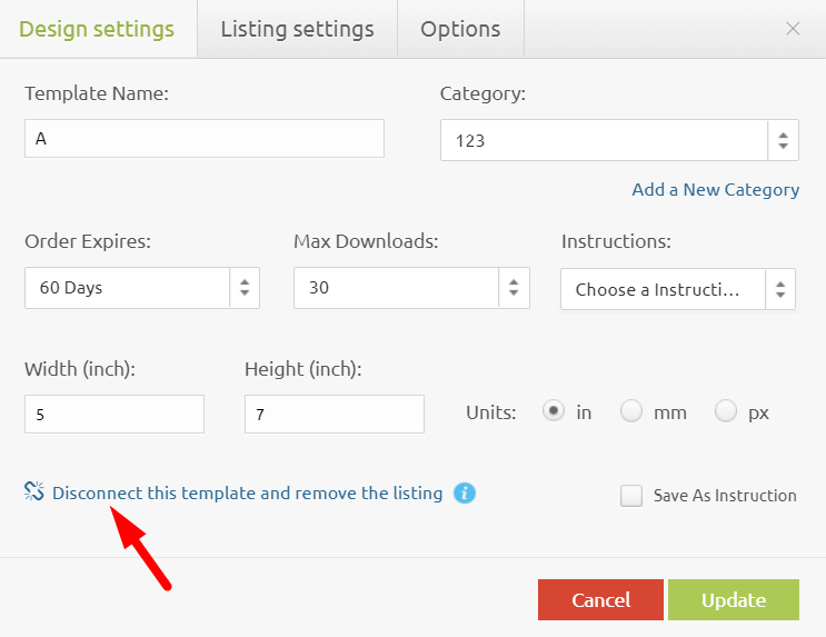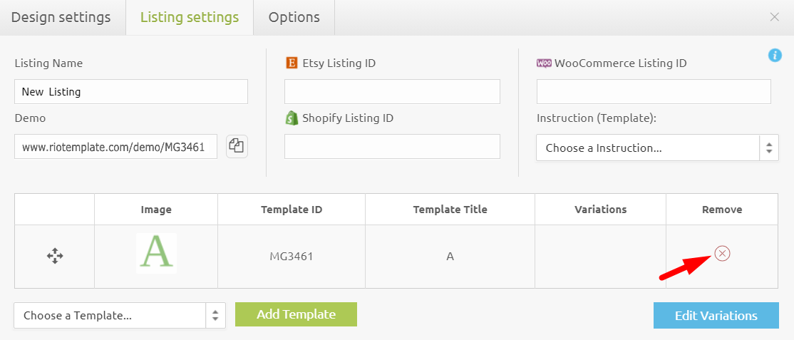 If you want to disconnect a design from the listing, but the listing contains a single design, then the listing will be deleted with all the settings.